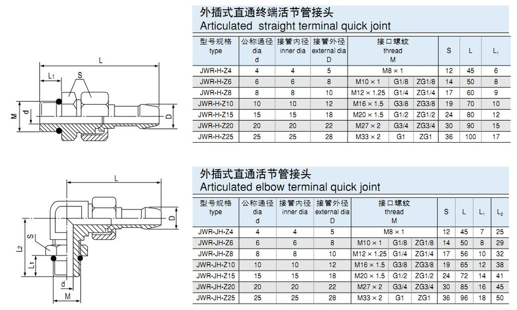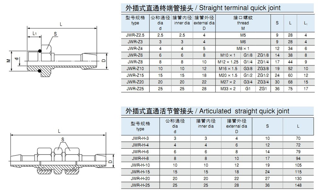*標記示例:①:卡套式三通終端管接頭 公稱通徑 Ø6MM JT-3T-Z6 M10×1