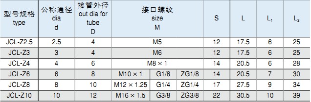 安裝及應用一、JC系列插入式管接頭,適用于連接硬質、半硬質尼龍管、塑料管,最大工作壓力為1.0MPa。該系列管接頭安裝方便,密封可靠,接管牢固、美觀。二、1、氣管切斷后去除毛刺, 將氣管一端插入接頭插口內(一定要插到底)即可達到牢