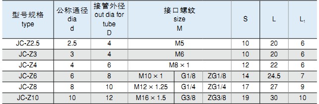 安裝及應用一、JC系列插入式管接頭,適用于連接硬質、半硬質尼龍管、塑料管,最大工作壓力為1.0MPa。該系列管接頭安裝方便,密封可靠,接管牢固、美觀。二、1、氣管切斷后去除毛刺, 將氣管一端插入接頭插口內(一定要插到底)即可達到牢固的連