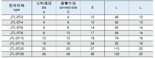 一、JT系列卡套式管接頭適用于有色金屬管,編織尼龍管的連接。最大工作壓力為1.0MPa