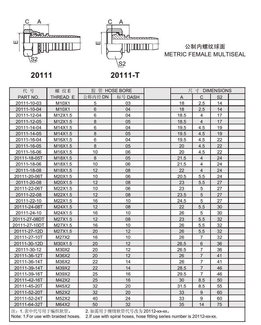 20111 公制內螺紋球面 扣壓式軟管接頭