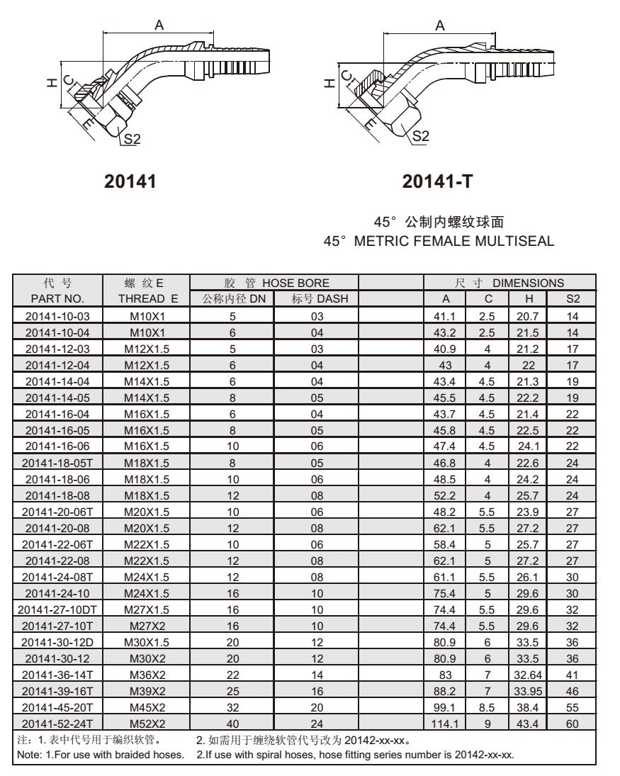 20141 45°公制內(nèi)螺紋球面 扣壓式軟管接頭