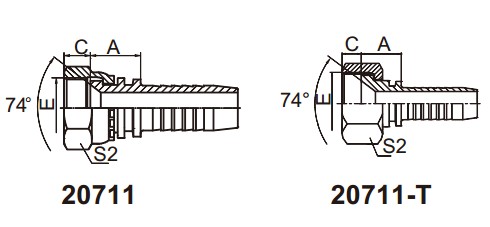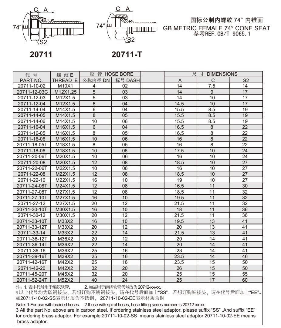 20711 國標公制內螺紋74°內錐面 扣壓式軟管接頭