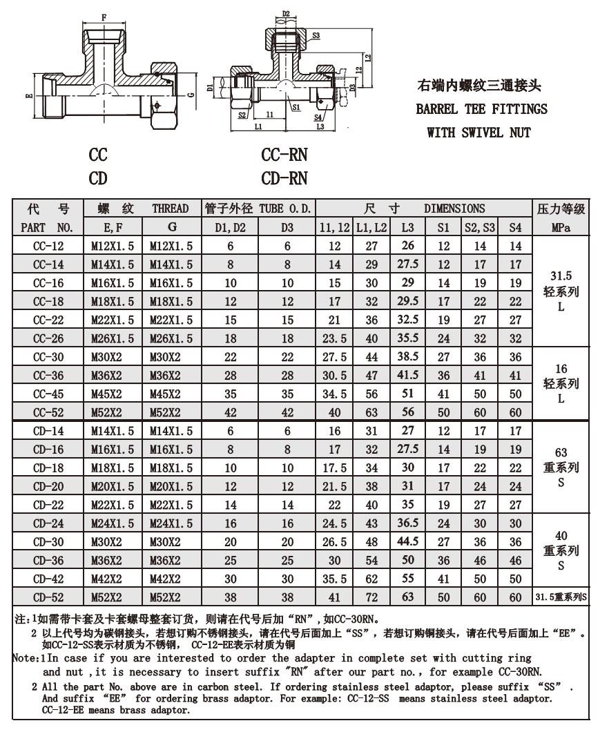 CC CD 右端內螺紋三通接頭