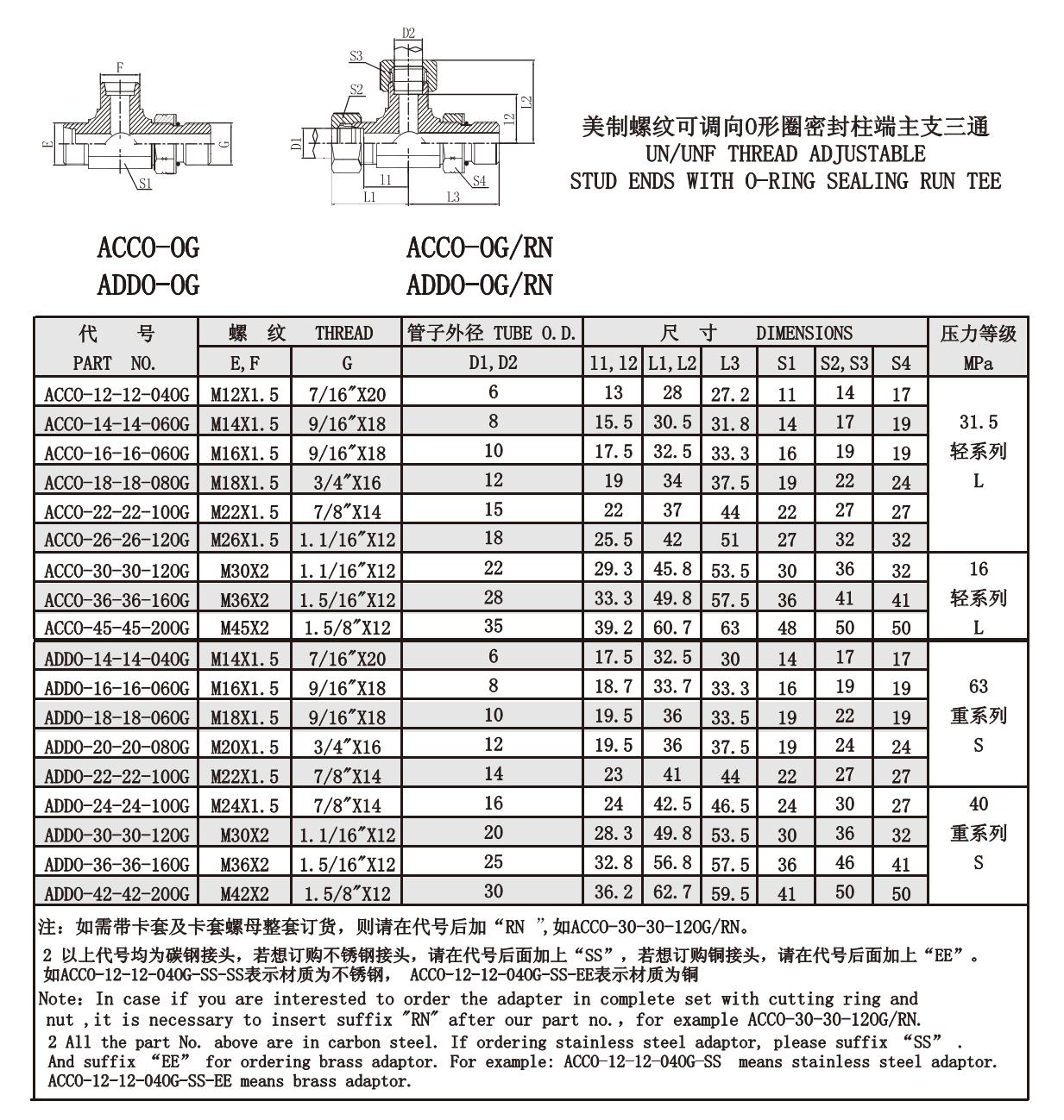 ACC0-OG ADD0-OG 美制螺紋可調向0型圈密封柱端主支三通