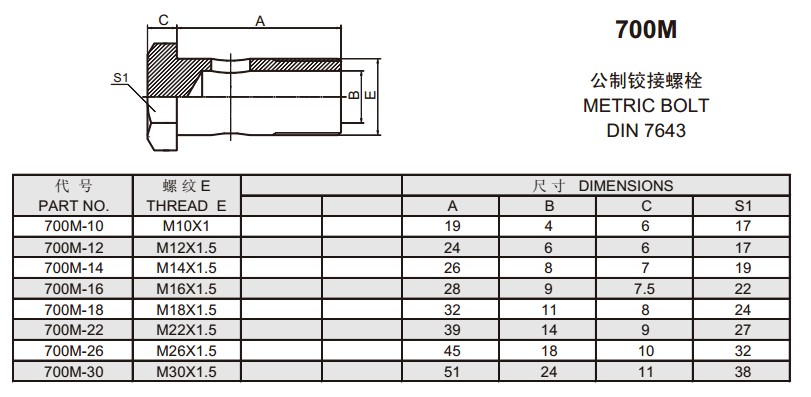 700M 公制鉸接螺栓DIN7643