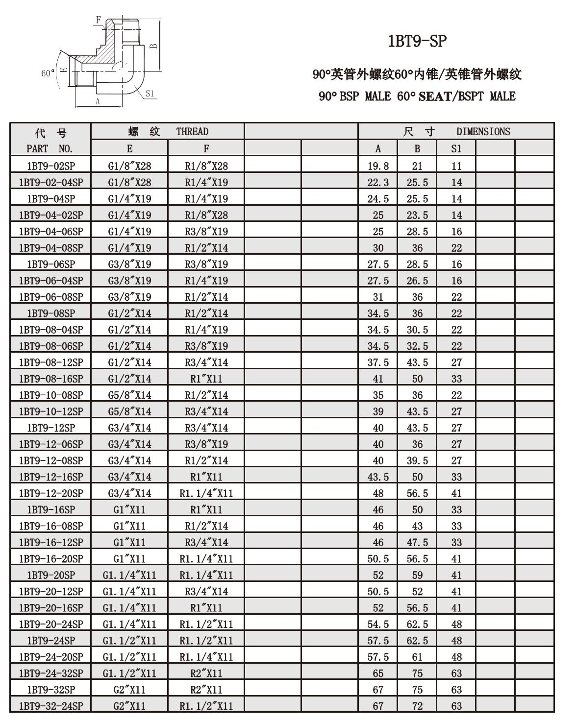 1BT9-SP 90°英管外螺紋60°內錐/英錐管外螺紋