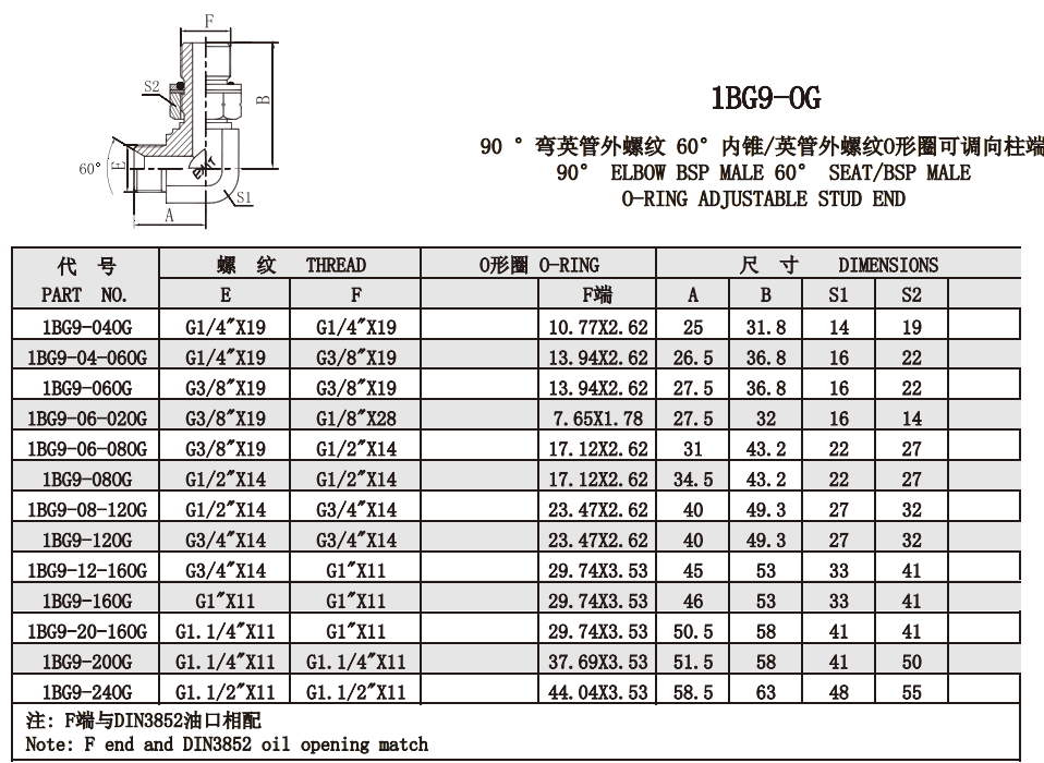 1BG9-OG 90 °彎英管外螺紋 60°內錐/英管外螺紋O形圈可調向柱端