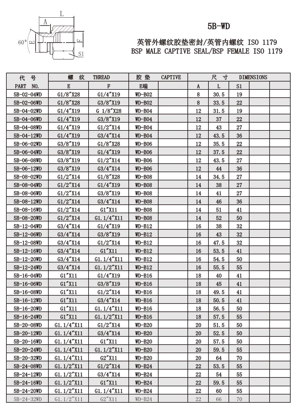 5B-WD 英管外螺紋膠墊密封/英管內螺紋 ISO 1179