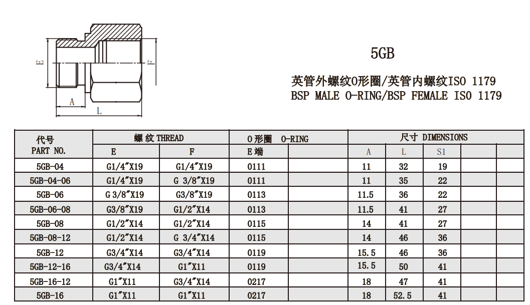 5GB 英管外螺紋O形圈/英管內螺紋ISO 1179