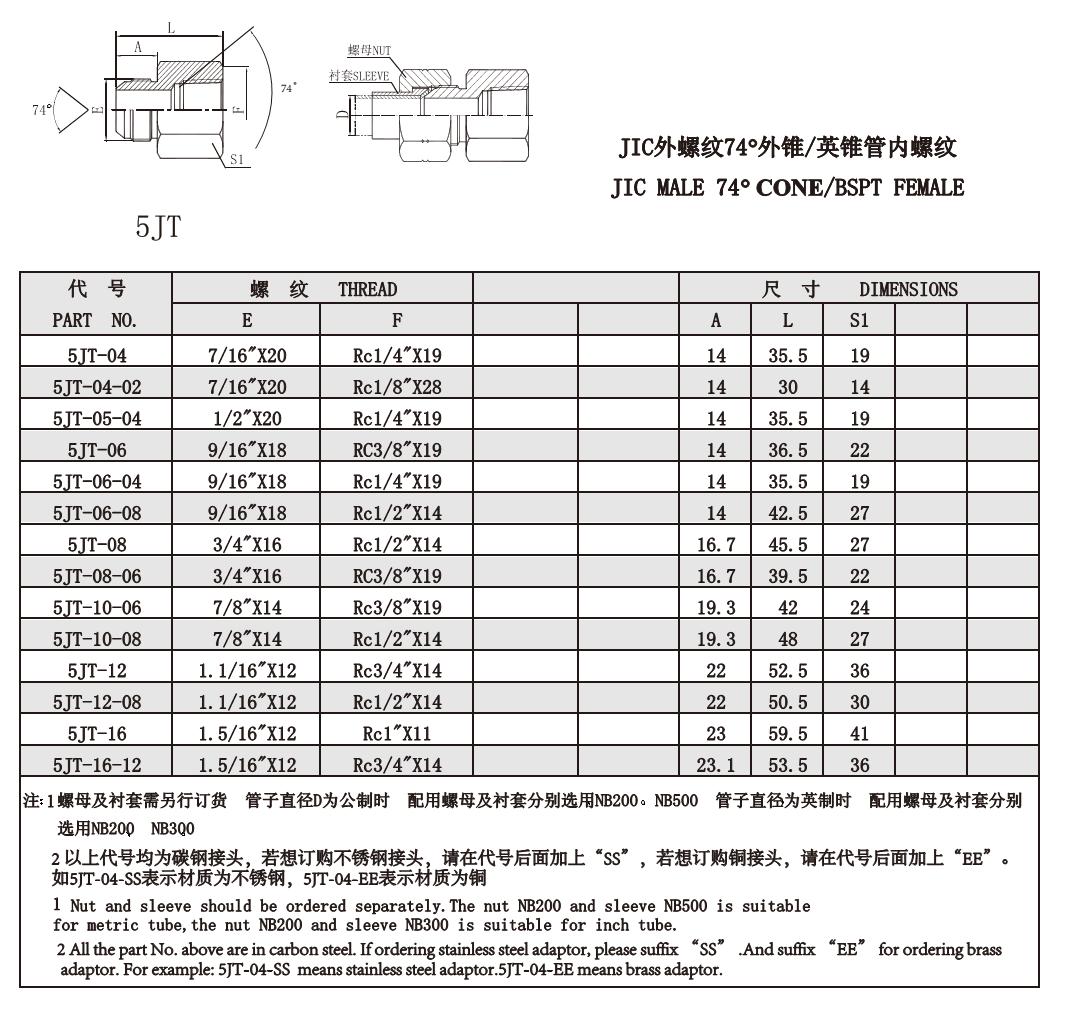 5JT JIC外螺紋74°外錐/英錐管外螺紋