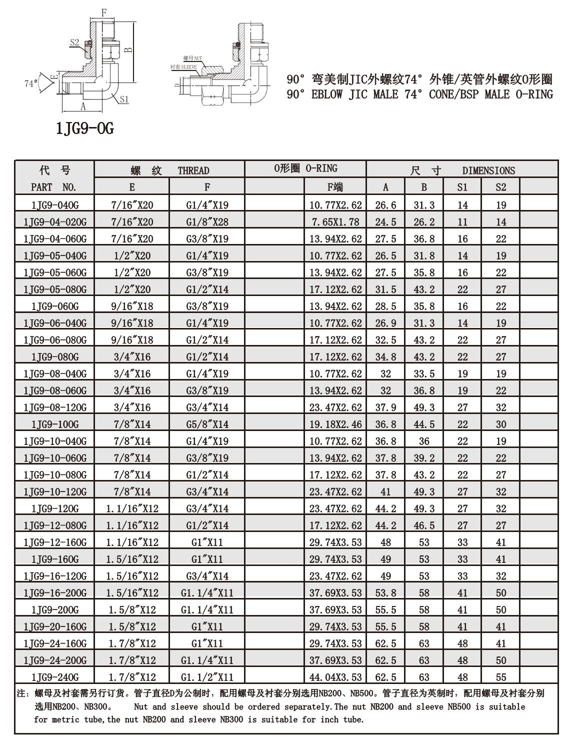 1JG9-OG 90°彎美制JIC外螺紋74°外錐/英管外螺紋O形圈