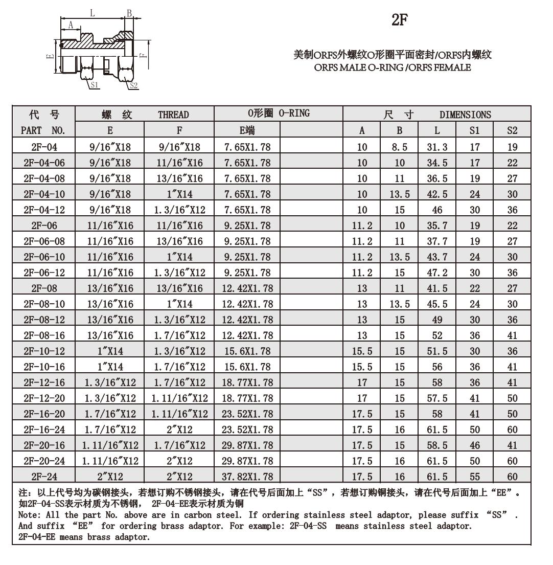 2F 美制ORFS外螺紋O形圈平面密封/ORFS內螺紋