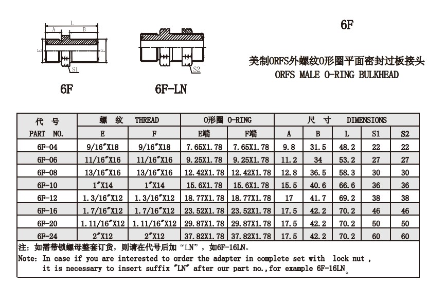 6F 美制ORFS外螺紋O形圈平面密封過板接頭