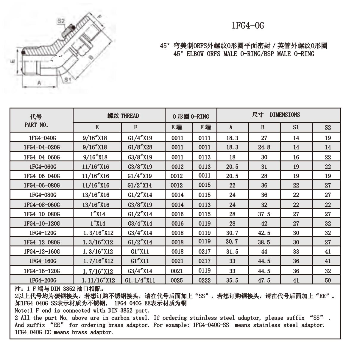 1FG4-OG 45°彎美制ORFS外螺紋O形圈平面密封/英管外螺紋O形圈