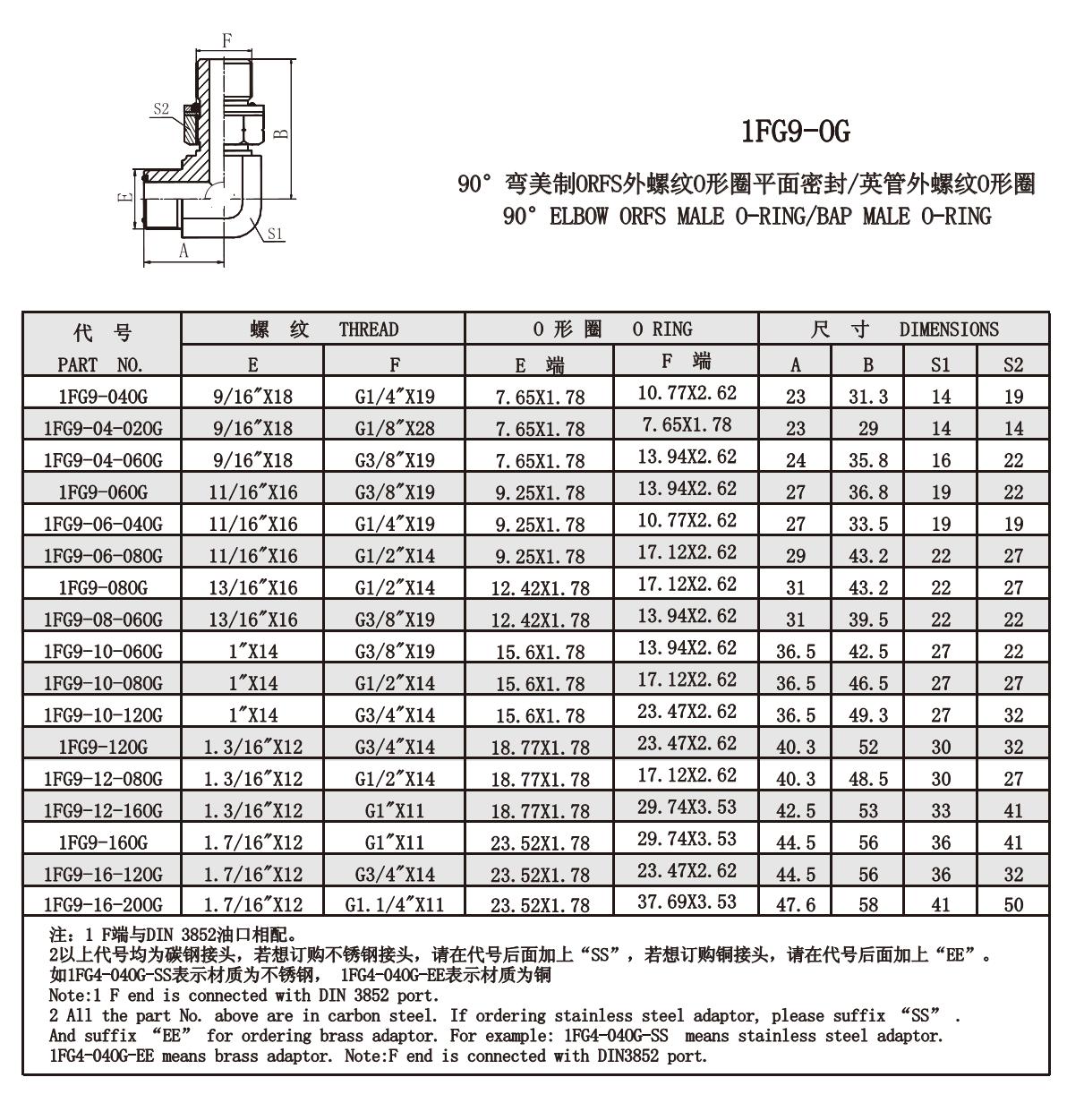 1FG9-OG 90°彎美制ORFS外螺紋O形圈平面密封/英管外螺紋O形圈