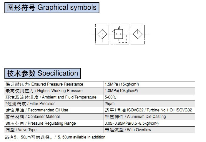 調壓范圍 / Pressure Regulating Range 0.05~0.85MPa(0.5~8.5kgf/cm2)