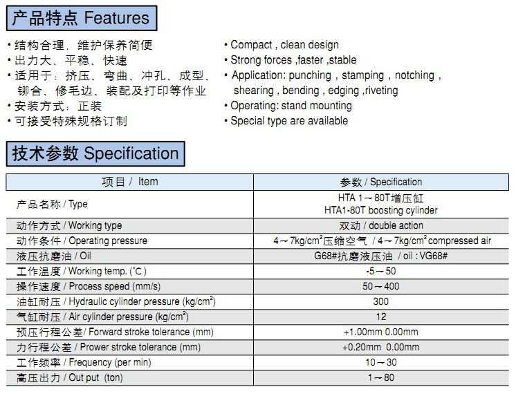 HTA1-80T boosting cylinder
