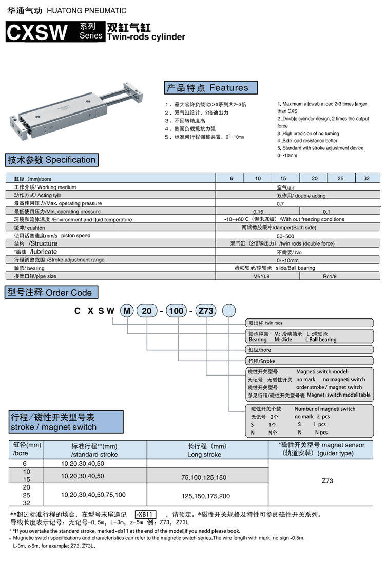 通桿型雙缸氣缸 CXSW系列,可非標定制氣缸來圖來樣訂做