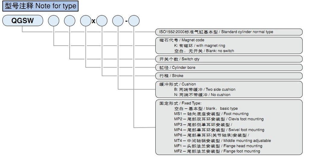 QGSW系列氣缸是歐洲型輕型氣缸,結構緊湊,安裝形式和
