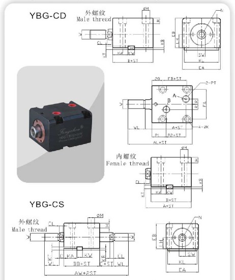 YBG-CD/CS油壓側向單軸/雙軸配管式薄型缸