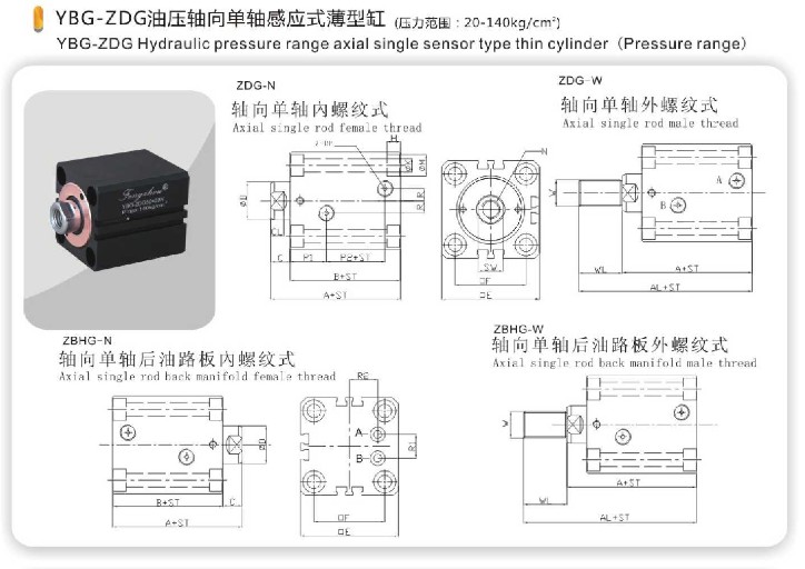 YBG-ZDG油壓軸向單軸感應式薄型缸 | |