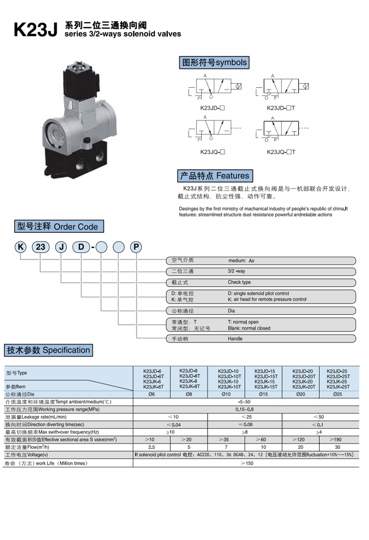 截止式換向閥 K23JD系列 二位三通,可提供定制