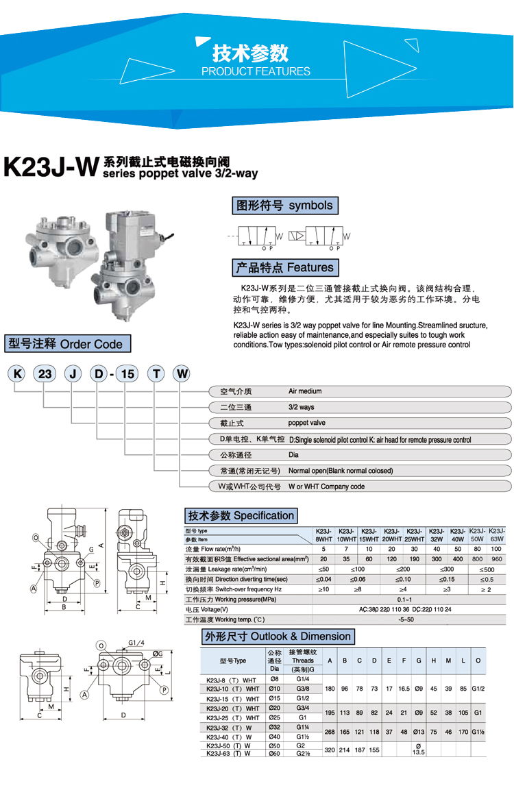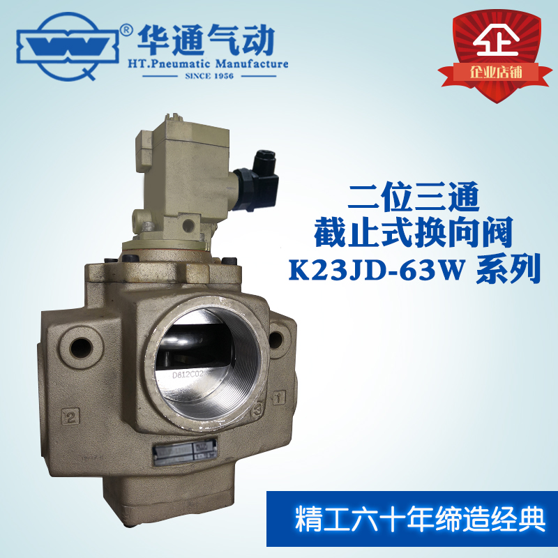 華通氣動K23JD-50-63WHT二位三通截止式電控換向閥電磁閥,K23JD-W大口徑2寸2-1/2寸氣動電磁換向閥