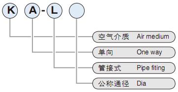 產品特點 KA-L系列為單方向型控制元件,空氣只能從P→A正向流動,反向截止,使回路中空氣不能回。 |