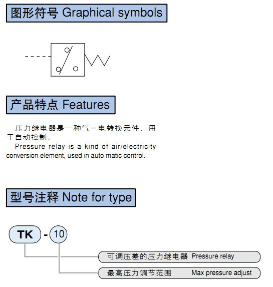 華通氣動(dòng) 壓力繼電器 TK-10,壓力繼電器是一種氣-電轉(zhuǎn)換元件,用于自動(dòng)控制。