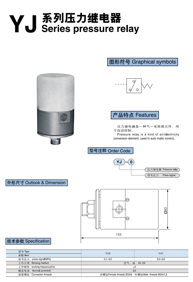 華通氣動 YJ系列壓力繼電器,壓力繼電器是一種氣-電轉換元件,用于自動控制。